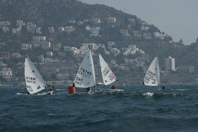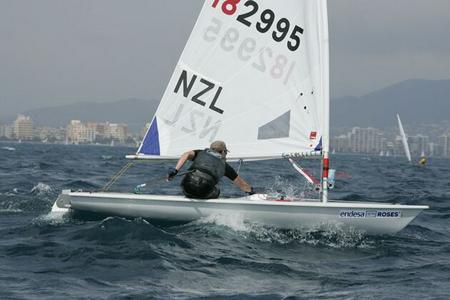 In the Great Grand Master Radial fleet. Sandy Grigg had a good day with 2 solid results. Tom Speed, who has had to buy a new tiller and tiller extension at very very expensive prices as his NZ gear got lost on the journey to Spain, did well in the first race but broke his brand new extension in the 2nd but still managed a good result. Tony Park did well and hunted around the course with the rest of his Tamaki mates. Michael Shields struggled today and the conditions are starting to wear the fleet down. Jim Quinn had a good 2nd race as he recovers from his knock on the head suffered yesterday. Mark Miller sailed consistently again today. Stephen Phillips continues to enjoy himself and managed to get a score today.